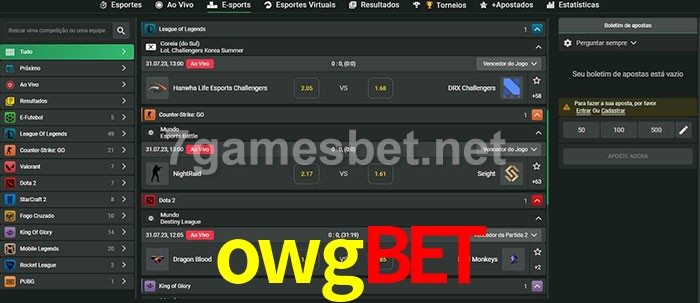 O owgbet oferece uma grande seleção de opções de apostas em e-sports com probabilidades competitivas